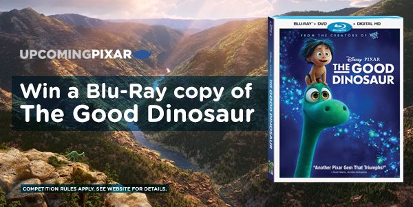 To celebrate the release of The Good Dinosaur on DVD and Blu-Ray, now available in the US, and available in the UK on March 23rd, Upcoming Pixar is giving you the chance to win your very own Blu-Ray + Digital HD copy of Pixar’s epic foray into the adventures of Arlo & Spot!