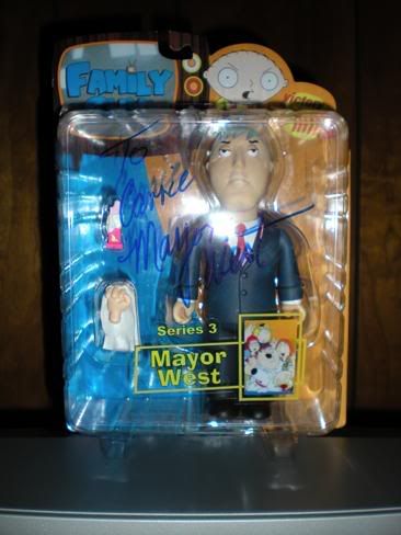 Adam West signed my Mayor West figure: “To Carrie…Mayor West” ![]()