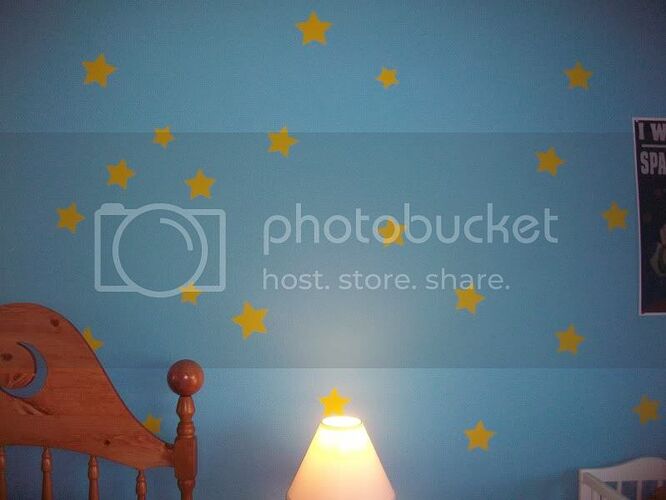 After repainting the walls a nice blue, I set about sourcing star-shaped wall decals (Andy’s room in part one has clouds, parts two and three have stars). I tracked down a seller on etsy that sold star decals that were perfect matches for the ones onscreen and custom-printed the sizes and quantity I needed.
