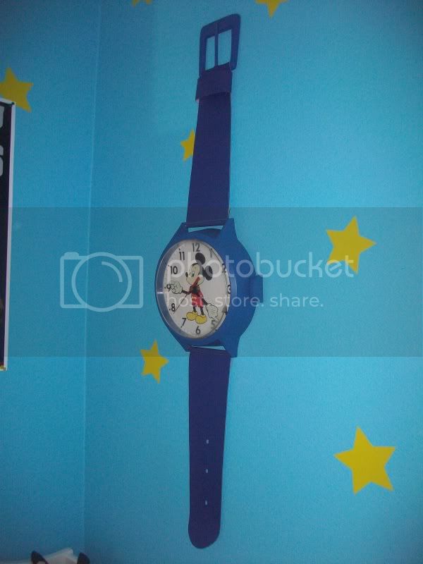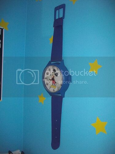 A little seen background prop in the parts one and two is Andy’s Mickey Mouse wristwatch wall clock. I actually HAD this same clock when I was a kid, but in the movies, the clock is solid blue. I eBayed the same gold and black version I had when I was a kid and repainted the face. I bought some blue vinyl and the wife and I fashioned new straps for the watch. I completely fabricated the buckle of the watch with MDF, Bondo and some wood dowel.