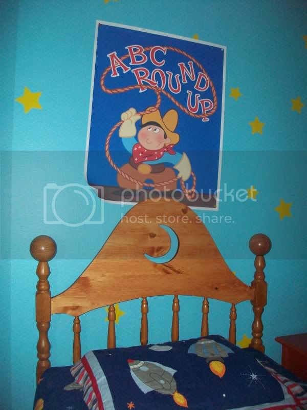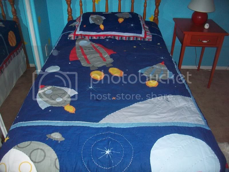 Bedding was bought at Target…but I might replace the space-themed pillow sham with a cowboy-themed one as per part two.