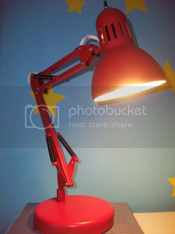A red swing-arm lamp is featured prominently on Andy’s desk. In real-life, it was nigh IMPOSSIBLE to find one that matched the film’s version. I ended up buying a black swing-arm lamp at Target, taking it apart, repainting it red and rewiring it with a white cord.