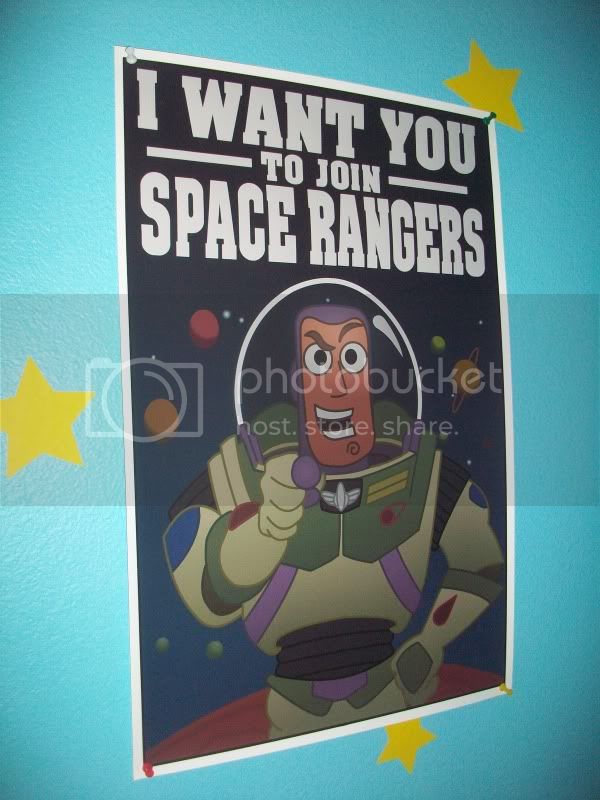 Jonason, creator of the Live-Action Toy Story project sent me the file he used to make his “ABC Round-Up” poster. I had my buddy re-draw it on Photoshop and took another trip to Kinko’s. You’d be surprised how tricky it was to get the poster to hang correct with the bottom left corner flipping up like that!