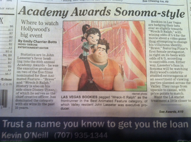 This was on the front page of my newspaper the other day. I thought you all would find it interesting, as it focuses on animated films and who they think will win. (The award most personal here, since it’s JL’s neck of the woods).