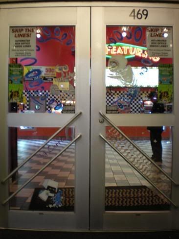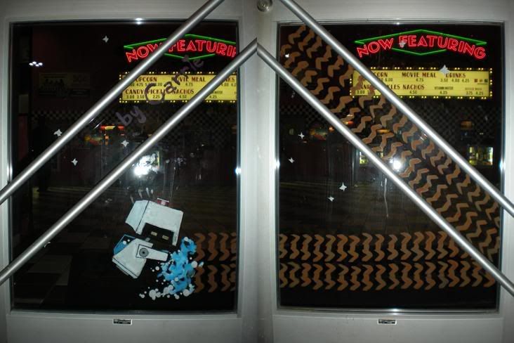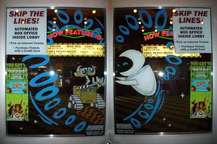 Much to my delight, the movie theater I work at has been showing WALL•E since October 10. :mrgreen: I asked permission to paint the lobby doors over the weekend: