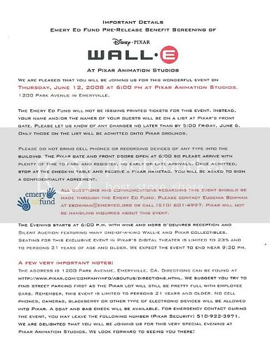 Before my recap of the evening, I do want to say that I will not be going into too many details on scenes or parts of the story from Presto or Wall-E for a couple of reasons. Besides my signature on a piece of paper that states that I cannot, there was also a personal request by a Pixar employee that I would like to respect. I will, however, express my overall impression of both films and the evening in general. Also, we were not allowed to bring electronics into the studios so this report will not include any pictures of the evening.