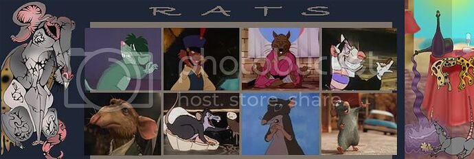 Here’s a banner/collage thingy of various beaver characters, bookended by two versions of my own character, Remi Vitoux.