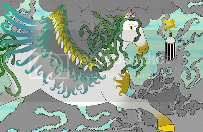 I agree- the pink and black color combo on those animals look cool. And the Pegasus/Medusa style is absolutely fantastic and creative. ![]()