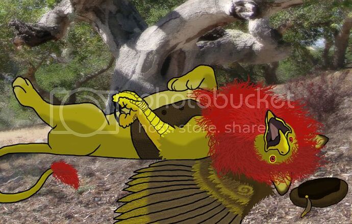 My gryphon character Ballad relaxing. The background is comprised of two photos taken by my mother near where I live (combined and altered in Photoshop)