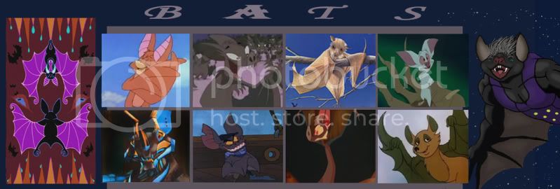 Also, here’s a banner with various bat characters. As with the beaver banner, the images on the far left and far right were drawn by me: