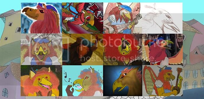 A couple samples from my ongoing children’s book project about gryphon musician Ballad and his human friend Sondrew: