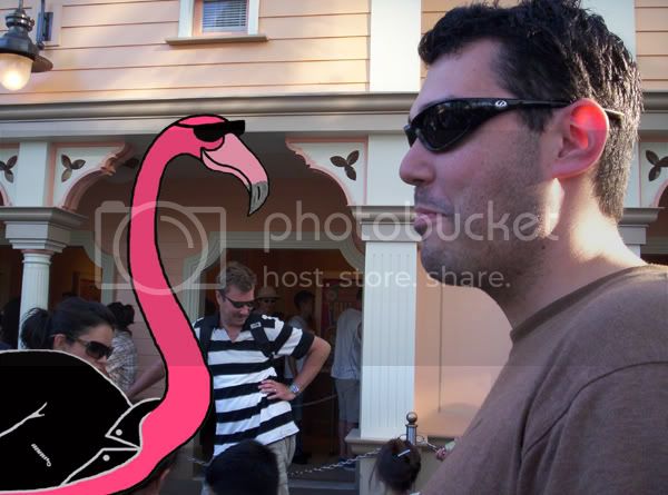 My friend Tomas on opening day of Toy Story Midway Mania at Disney’s California Adventure with a flamingo.
