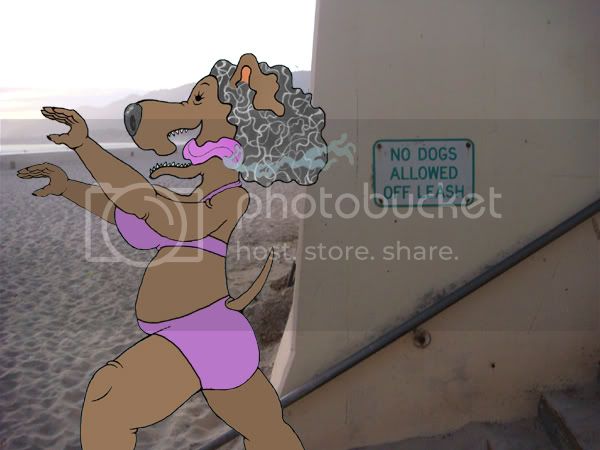 Another pic with a Pismo Beach background, with Iris the bloodhound.