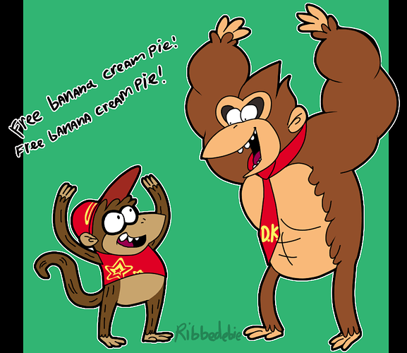 Also, to top it all off; here’s another Regular Show/Donkey Kong crossover. More silly than last time, since it’s just Diddy and DK in the cartoon’s style. xD I doodled this one a few hours ago.