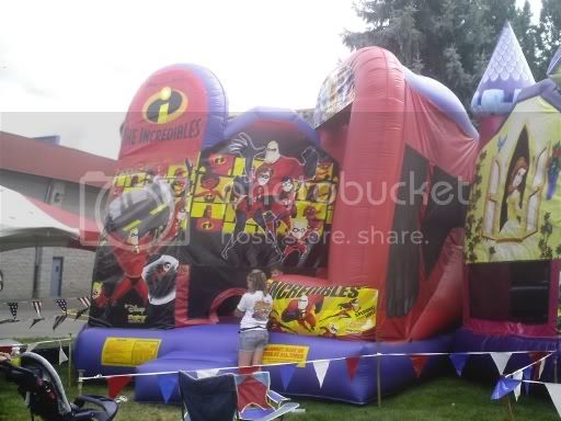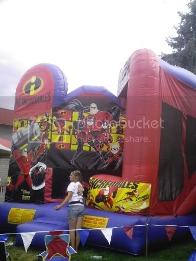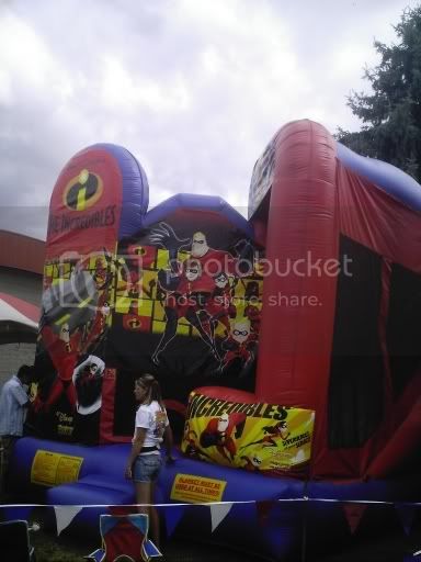 Just a quick scoop for you guys. Walking around at a local fairgrounds, I noticed a “Incredibles” version of one of those bouncy/balloon/things - kids get in and bounce around for 10 minutes. Caught some pics on my cell. Ignore the person in front, she was some “supervisor” or something…
