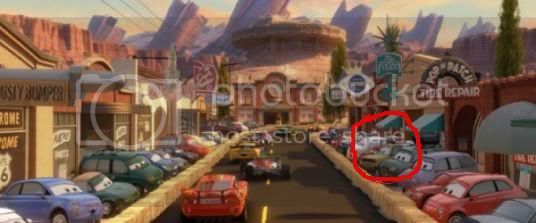 -When Mater and Lightning are driving down the streets of Tokyo…In the first shot, to the right of McQueen is the same exact car from Mater’s Tall Tales: Towkyo Mater who challenged him to the drift race. Plus, he’s also seen at the Tokyo gala right before we see Finn.