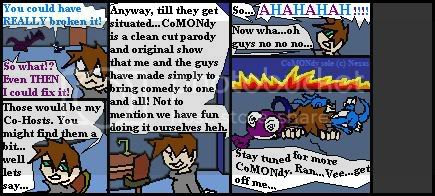 That, my serial comic-drawing friend, is my warped sense of humour. I was making fun of cheesy promo ads and sponsor idents. Don’t take it too seriously. ![]()