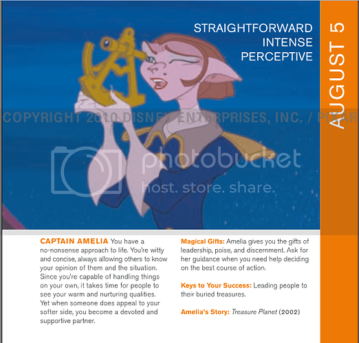 Well, thank you for the input. I don’t consider myself much of a leader (or poised! haha), so that’s why it’s only an okay match. Now that I think about it, though, Captain Amelia is somewhat playful and soft under her tough exterior, and indeed it does take time for people to see my own “warm and nurturing qualities.” Okay, I’ll take it!