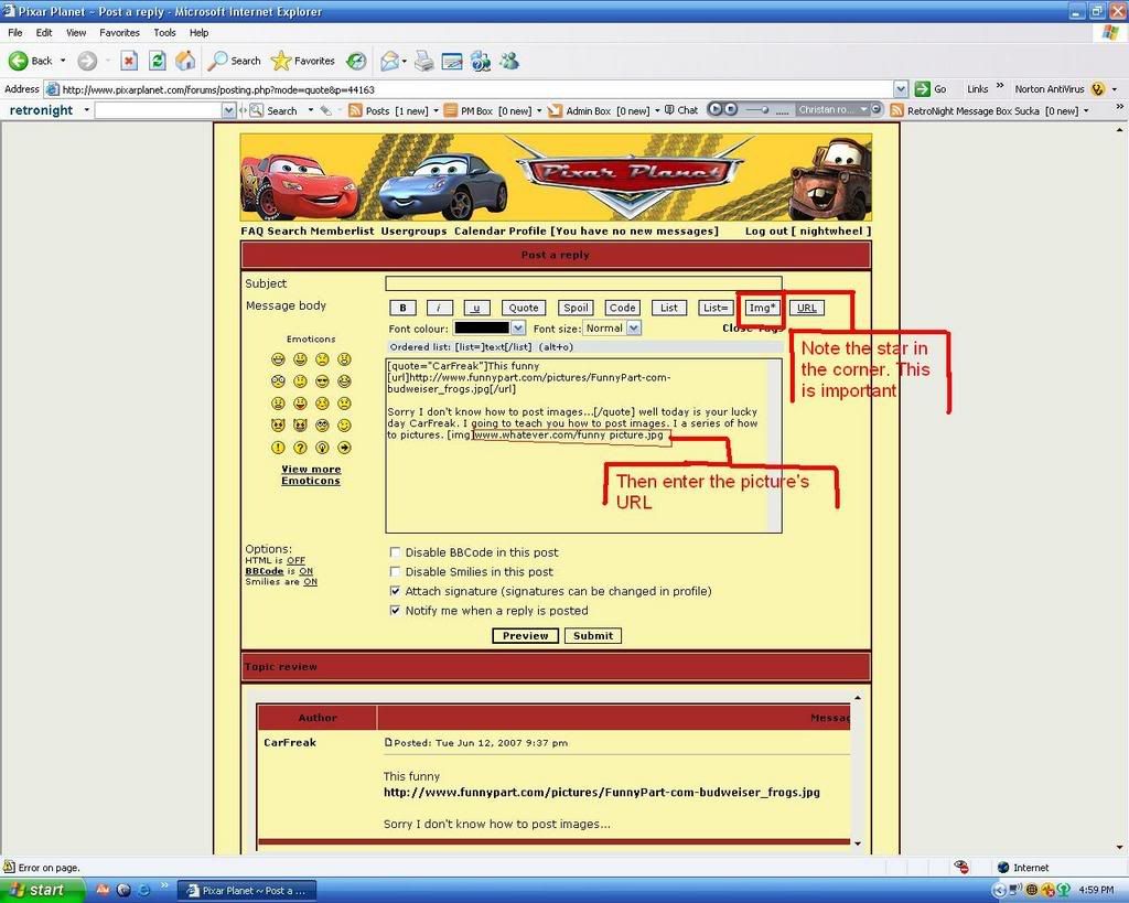 Well today is your lucky day CarFreak. Im going to teach you hay to post a