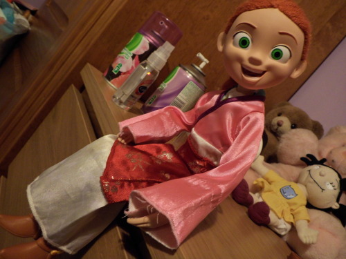 Ohmahgoodness, Jessie looks absolutely beautiful in that kimono! Did you sew it or did you just happen to find a perfect-fitting doll dress? The sprite’s real cute too ![]()