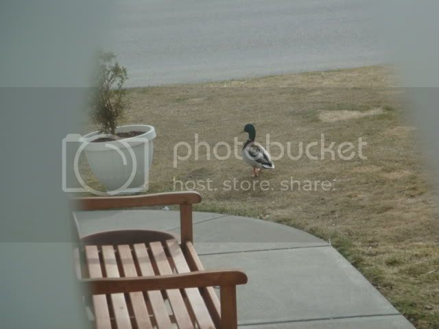 When I woke up a few minutes ago, I looked out my front door and there was this beautiful male duck sitting on my lawn. =] He and his mate come to our neighborhood every springtime. Usually they sit in the middle of the road or on someone; roof, haha.
