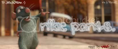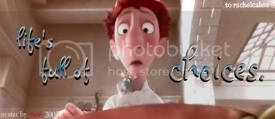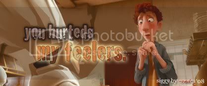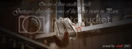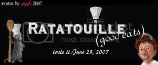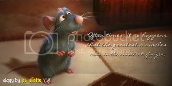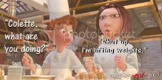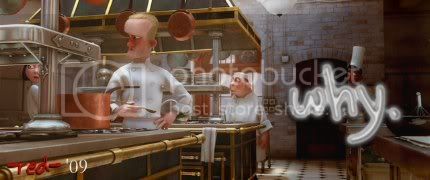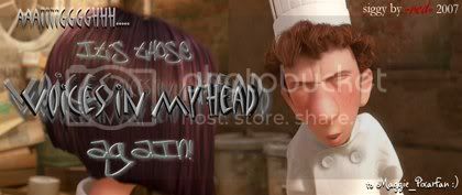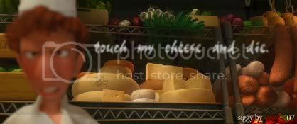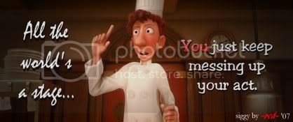 Holy crap, little chef! Those are awesome :smiley: ! That was a lot! They’re all great. I found myself howling at them several times. “The Many faces of Remy” is adorable! “Push Here” was hilarious :laughing: ! The “Signs of Insanity” series was too funny! And “My Holy Toque” was accompanied by a hilarious facial expression from Linguini. Other ones that I liked were “Finest Views of Pris”, the one were you pasted Remy into Jack-Jack Attack, “Nice Pants”… Wait a second. Was that one of the inside jokes, because if it comes from what I think it comes from, I get it. Did you happen to get that from “Who’s Line Is It Anyway?”, were Colin starts the running joke of “nice pants”? Anyway, I also liked the one of Remy and his dad, when he says, “Dad, I can’t find the bathroom…!”, “Guys like girls who can BURP!”, “Sicko.” with WALL-E, “You hurteds my feelers.”, and “And Now We Dance!” You have major talent for choosing tag-lines, and for altering images. I can’t wait for the next batch :slight_smile: ! Keep up the great work :smiley: !