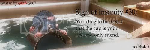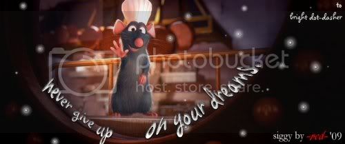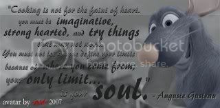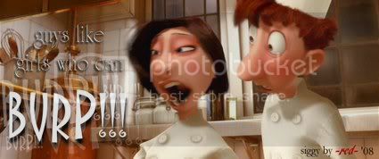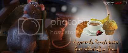 I really love all of them little chef. It is always a joy to read your cute, clever, and humorous taglines. I you got a talent for creating avatars and siggys. Keep up the great work. You deserve a pat on the back from all of us.