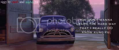 I love these! My favorite would have to be the Doc one that says “You don’t wanna learn the hard way that I really DO know kung-fu.” That is too hilarious!!! I wonder what the backstory could be to that one! XD I also like the one with Lightning that says, “This is the CDA. Come out slowly with the child in plain site.” XD These are all funny actually! At least the ones I understand. Like you said, some are in-jokes. Hey, can I use the above-mentioned Doc signature? I’ll give you credit for it! I need something better than that Danny Phantom picture I’m using.