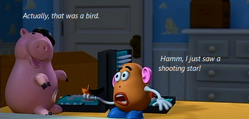 Oh my gosh! I just looked at this today and…hee-hee, those were too funny! Especially the “shooting star” one. (Though I gotta admit, Hamm looks sooooo adorable in that pose!) And by the way, what about my requests which I sent to you weeks ago and you still haven’t done?