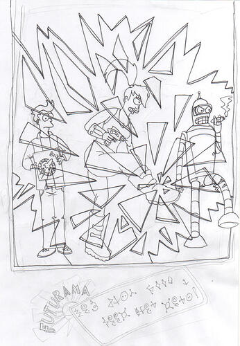 But I’ll get round to scanning some stuff in, and I’m working on a Futurama piece pf which I should have a scanned draft for tomorrow.