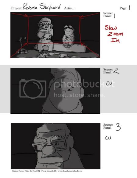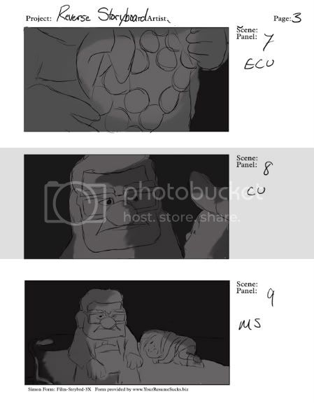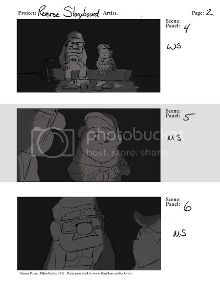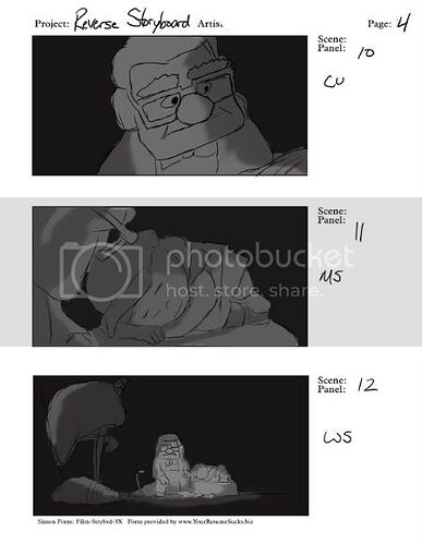 Thought I’d revive this thread by posting some rough storyboards I did for my Storyboard class. We had to pick a scene from a movie to storyboard - analyzing the camera movements, composition, and lighting. I naturally chose a scene from Up.