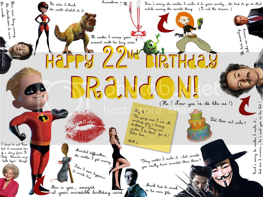 Happy birthday, my man. I agree one hundred percent. Heck, we wouldn’t even have been blessed with such a fantastic site without you (plus PV , Vim (the Great and Terrible) , KE , TL , Mell (my lord and master) , I’m trying to get everyone here, it’s a joint effort) . So yeah , have a fantastic 22nd birthday . In fact, I might have something for you later (maybe a The Incredibles birthday sketch would do it ) . Once again, have a great birthday.