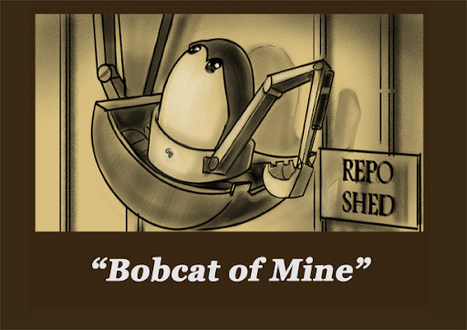 The drawing is based off the ‘baby mine’ sequence from Dumbo. It’s one of John’s favorite films and I added the twist with a Bobcat instead of a baby elephant and figured a prison would be a shed for reposed vehicles instead of cage with a mad mother elephant. [url]http://www.youtube.com/watch?v=y7JvL2ap3Cg[/url]