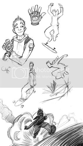 I agree with TSS, there’s a lot of movement in those sketches because of the way you’ve drawn them, and that goes perfectly with Dash’s speedy persona. Loving the longboard idea too- he is definitely going to be a skater kind of guy when he’s older! And you’ve still got his trademark cockiness down pat, something I can also see increasing as he gets into his teenage years, haha.
