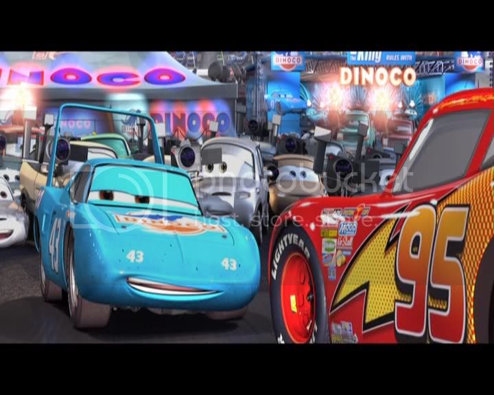 I have a funny screen grab of The King talking to McQueen when he calls him stupid. I hit pause at just the right time, as a Camera flash illuminates the King, he is doing McQueens Ka-Chow! It’s funny!