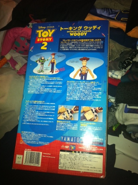 I have a Thinkway Toy Story 2 Interactive talking Woody, the entire box is in what seems to be Japanese writing, and is supposed to communicate with Buzz through infrared, I have never been able to locate this item on Ebay and am looking for further info and possible value. The back of the Box says Thinkway and Yamato, any ideas?