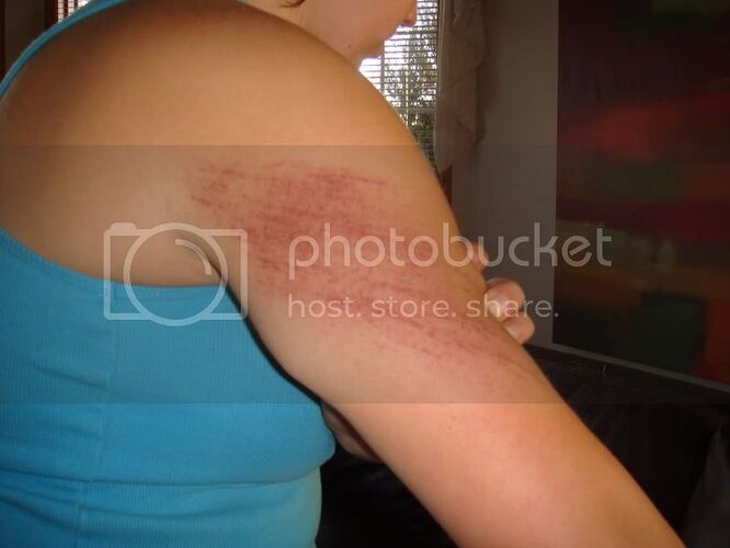 lizardgirl - Cha, it was all white and everything! The pain was so bad that I couldn’t move my leg. I still have the scar, actually, and I’ll probably carry it for the rest of my life. ![]()