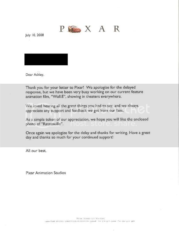 Thanks, guys. For some reason I’m more happy about having a Pixar letterhead, than the autographs. Heh. I strongly recommend you guys requesting autographs, as well. ![]()