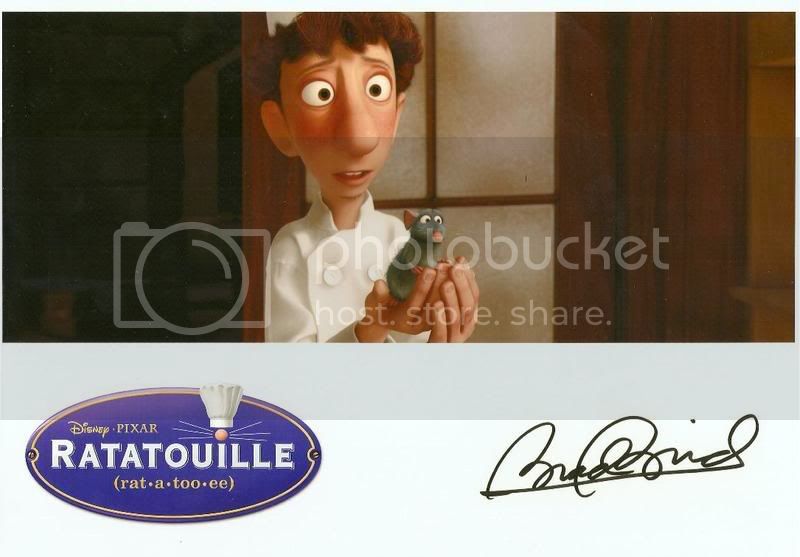 I’m tempted to send in my Ratatouille DVD cover to see if I could get Brad to sign it. (And in time, my Wall-E DVD cover to see if I could get Andrew to sign it.)