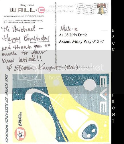Cool. Let me know what you get back, lennonluvr9. I want to know if Pixar have gotten any WALL•E prints in, or if they are still sending out postcards and stickers and whatnot.