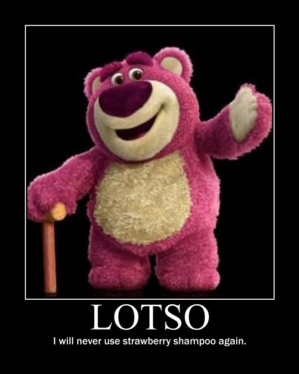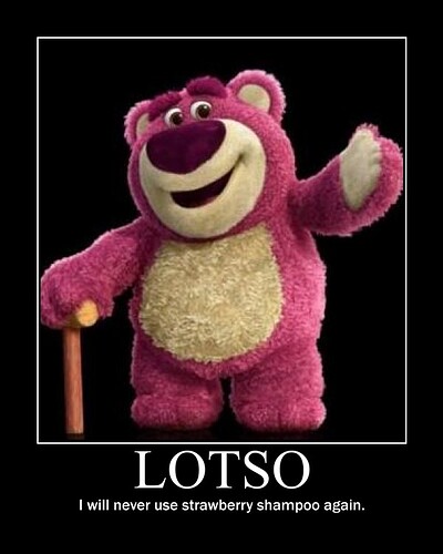 But my Lotso is just a cuddly, stuffed bear who smells of strawberries and likes to hug. :slight_smile: