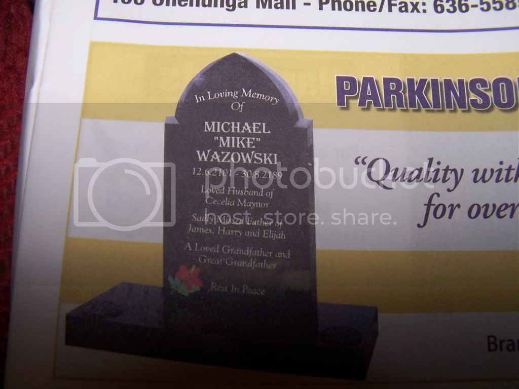Wow, a memorial company with a sense of humor! The even included Celia Mae there, except they modified the name. And one of the sons is called James!