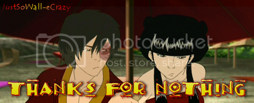 OWP: I love the “No Tacos” one too! And the “Random In-Joke” sig is also one I thought of just out of the blue. I don’t know; I just felt it went well with Aang’s face XD. I will admit, however, that little_chef_eva09’s random and humorous siggies have been quite an inspiration to me, not to say I’m copying her or anything like that, but rather I’ve improved from studying the effects and tools used to warp, re-color, and add other special touches. And even though I don’t really use my Photoshop Elements Program, I’ve been able to do techniques on Corel Paint Shop Pro that are very similar to Photoshop; it’s all about experimenting with a variety of tools.