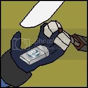 “OH!” Wall-e replied, frantically opening his storage compartment and looking for something in particular. When he found it, the object small enough to fit in his hand, the two moved over to them, Sean kneeling down. Wall-e took a moment before opening his hands. Inside was a small silver lighter with the B&L logo in blue.