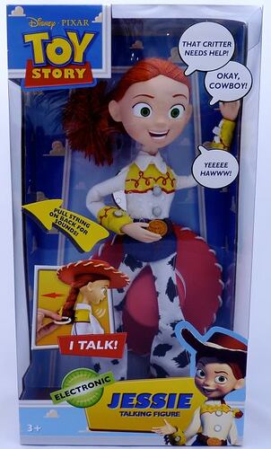 Hey! I believe we are looking for the same doll, I managed to get a movie size replica (although mine may have been a couple inches taller) at a yard sale in 2008-2009. My dad, unfortunately, threw the Jessie doll away along with other vintage toys. I recall her having the same head as the doll you posted, she was a pull-string doll although I don’t think I replaced her batteries. She was a bit taller than the version Disney released in 2010, she had accurate clothing from the movie and I remember I once tried to replace the battery and the battery pack was right next to the pull string. The batteries were round I believe, she had plastic hands, string hair, overall accurate to movie. I hope you’ve had a bit of luck. Feel free to message me! - jess