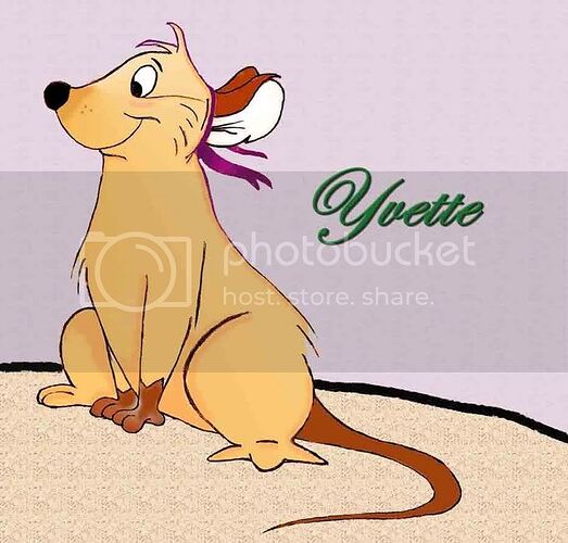2) Yvette is my “fursona” and, as I recently decided, an OC character from Ratatouille. One of four rascally, adolescent rats in the “Quidnunc”* gang (a fictional and sub-clan within Django’s enlarged “mob”), her favorite activites include causing mischief whenever possible while still retaining a favorable and sentimental personality in the process. I call her my “fursona” for a reason… (snigger)