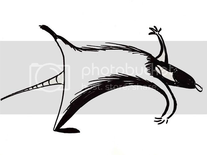 1) The Linguini drawing was done for sharpie for her birthday. Although I rendered it in Photoshop, Linguini’s profile looked a tad bit more believable before I messed with it. ![]()