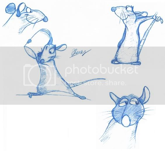 No, I think Remy is cute, too. I’ll probably think he is even cuter after seeing the movie. I must say that you are getting a lot better at sketching Remy, Mitch. My fav sketch is him giving the sly look on the bottom right - the eyes are the best.