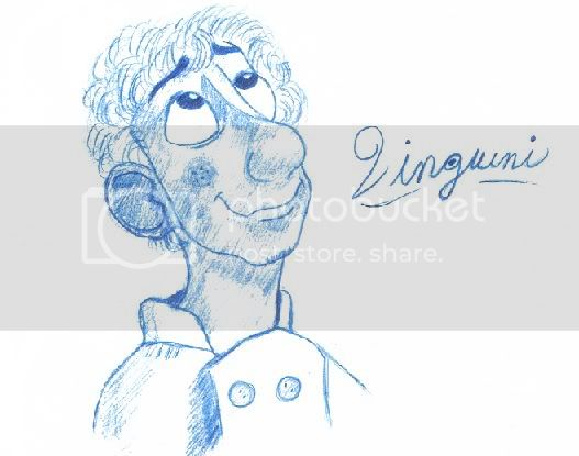 This is actually a make-up sketch in contrast to my little “screw Linguini” joke a page or two back. Unfortunately, in this particular sketch, he looks more like a Disney creation than a Pixar character. Oh well. I tried! Heheh…