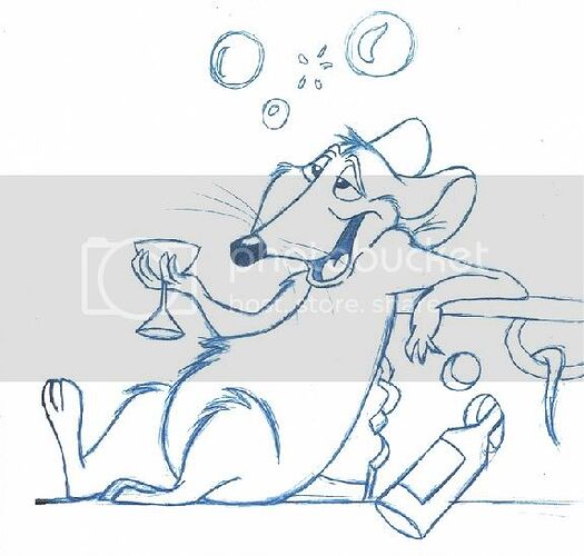 *Keep in mind that my dad drew the initial drawing, even though my sister and I conjured up the original concept of a drunk Remy. Being an animator (and a comedic one at that), dad obviously invented a few things that could be added to the piece, such as Remy’s tail hanging through/upon one of the holes in the block of cheese.